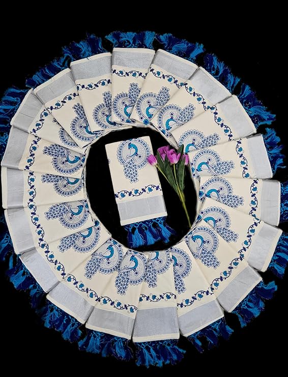 • Design: Elegant blue round peacock motif for a traditional yet stylish look