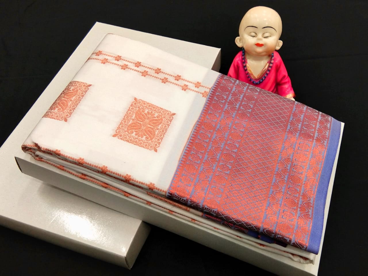 Classic and graceful, this Cream & Bronze Kanchipuram Handloom Soft Silk Saree captures the essence of timeless elegance. The soft cream body is adorned with rich bronze zari borders and a grand pallu, creating a perfect blend of sophistication and tradition. Handwoven from pure soft silk, it drapes beautifully — making it an ideal choice for weddings, festive occasions, and cultural celebrations.