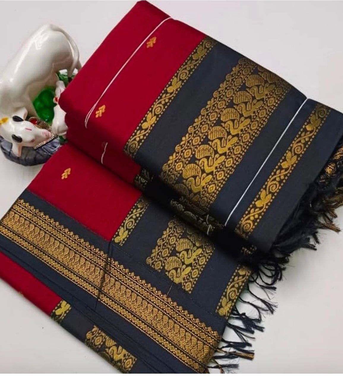 • Design: Traditional Lata Gadwal pattern in classic Red & Black